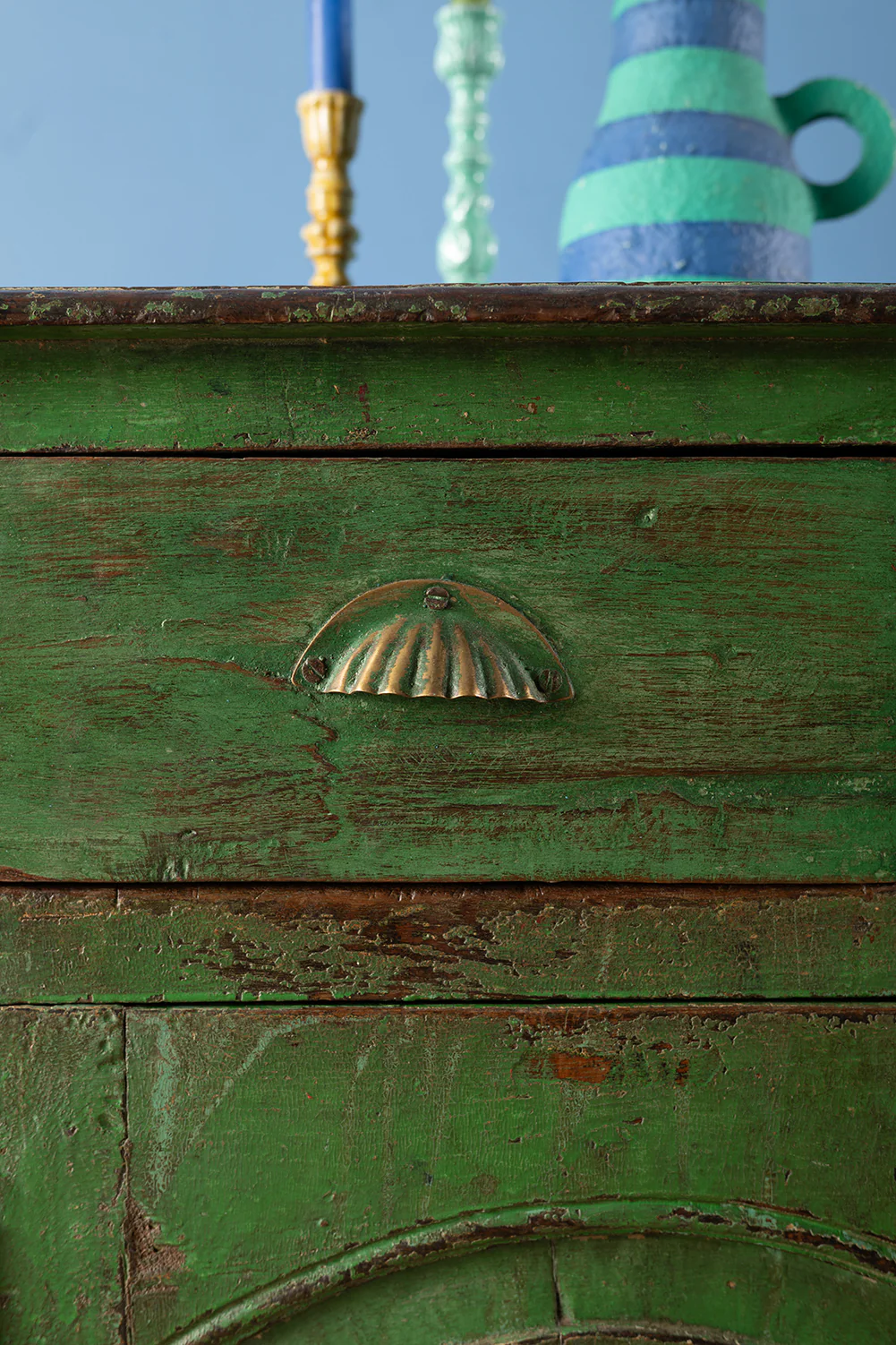 Green Vintage Wooden Cupboard <p>W:97.5cm D:53cm H:106cm </p>