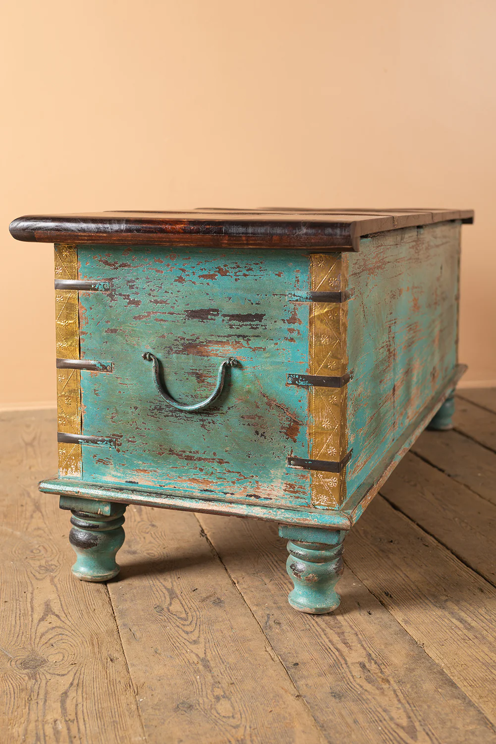 Often taken for granted or a neglected item, the coffee table can sometimes fade into the background. Make it the focus of attention and a fabulous talking point with this gorgeously handmade wooden chest. Made from a mixture of reclaimed and new wood it is practical with plenty of storage space and beautiful with a painted distressed and rustic finish. Finally the understated brass detail adds a functional sturdiness as well as a delicate beauty. Enjoy a well earned coffee break whilst admiring an amazing work of art.