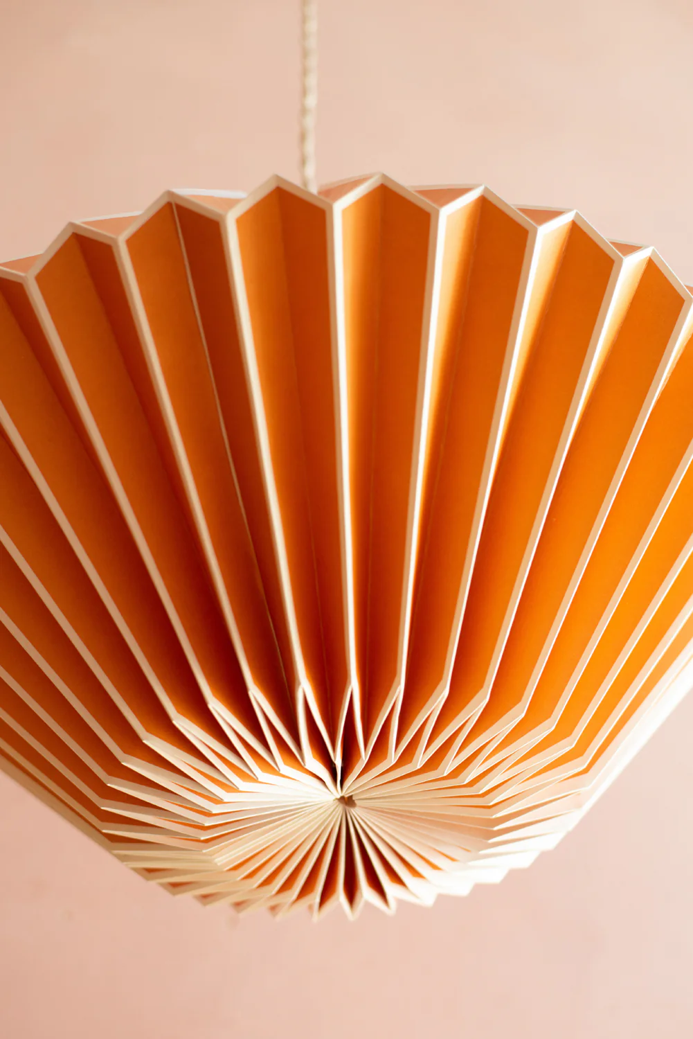 A contemporary accent to any room this neatly pleated orange paper lampshade is beautifully simple in its construction, yet eye-catching and complex in appearance. It is aĀ bold, regal and striking accessory that looks stylish and neat on its own or team with other paper products from within the range for a fun and daring look. The primary colour scheme would suit a childās bedroom or a functional, modern look with its clean lines and geometric design.