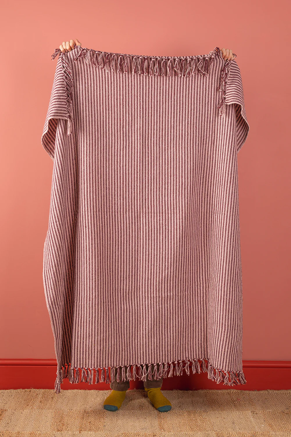 Plum & Dusty Rose Recycled Cotton Striped Throw