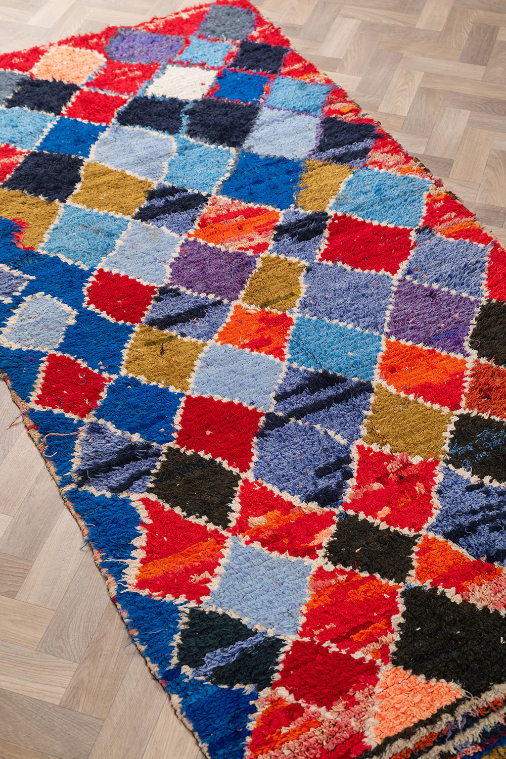 Vintage Moroccan Tufted Diamond Boucherouite Rug 115x235cm - (34)