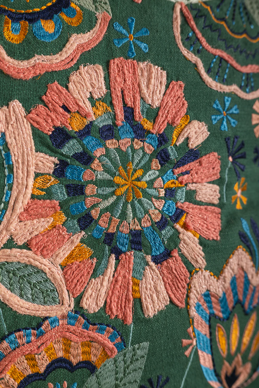 Sea Green Floral Embroidered Cushion Cover