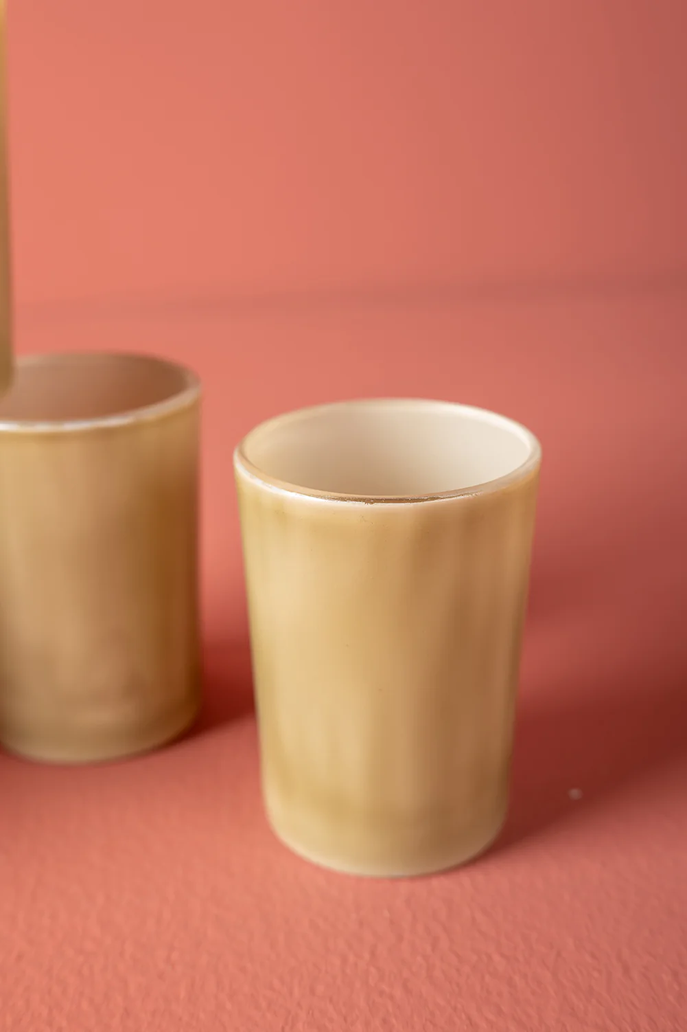 Sage green painted glass votives.Â