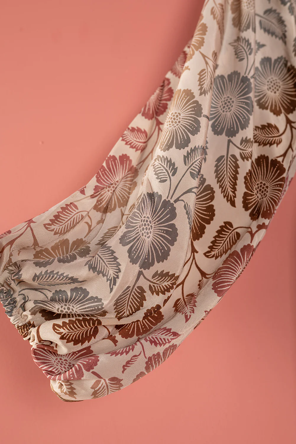 Seconds Cream & Brown Long Sleeve Recycled Silk Dress - Large