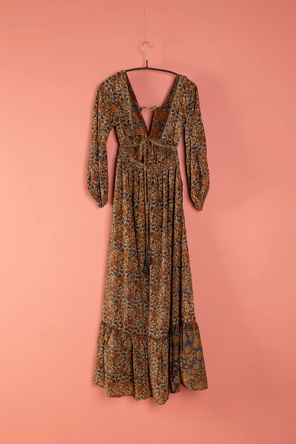 Seconds Brown & Black Long Sleeve Recycled Silk Dress - Medium