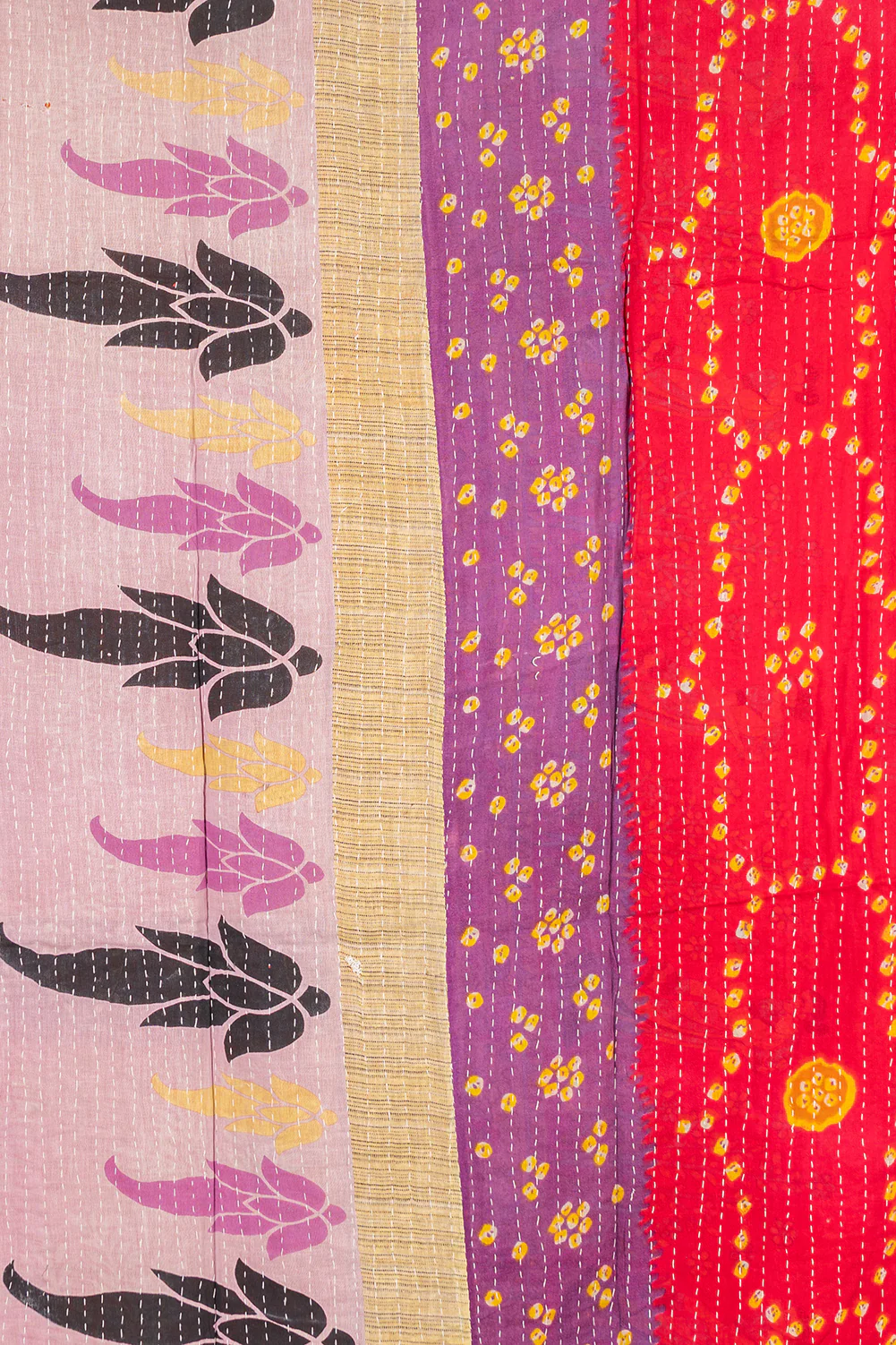 These cotton Kanthawork throws are made using vintage fabric saris and are really enchanting. Because of the nature of this product each one is unique, and is reversible and has a different pattern on the reverse. Some of them also have little patches, fading and 'flaws', these are not faults but part of the age and wear of these throws, indicating the life they have had, and are part of their story and charm.